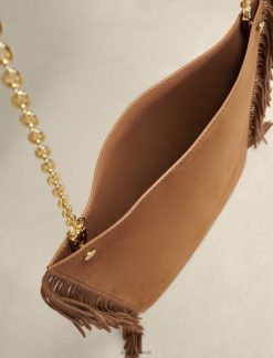 Maje حقيبة يد من جلد الغزال مهدب ملحق جمل نحيف JP08B472