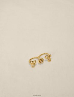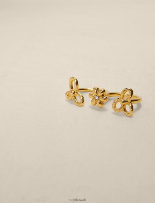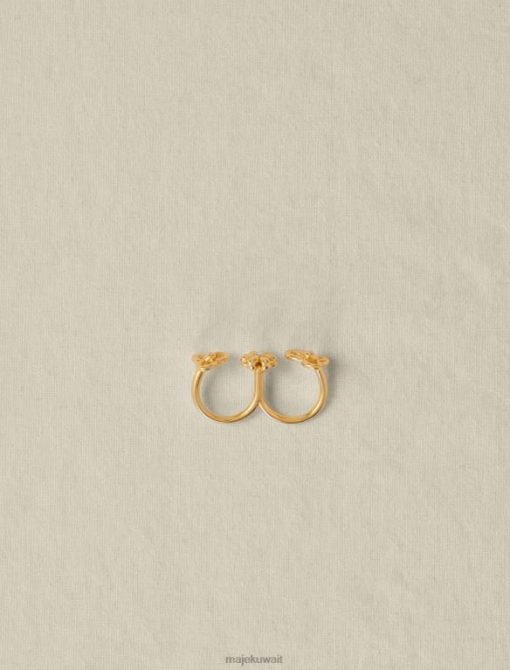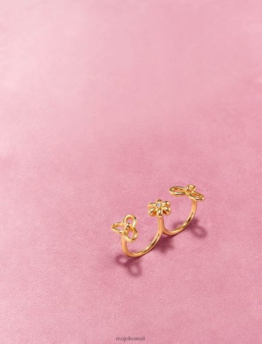 سوف تستقر زهور الموسم المميزة على أصابعك مع هذا الخاتم ذو الإصبعين من النحاس ذو اللون الذهبي الرومانسي والجريء.