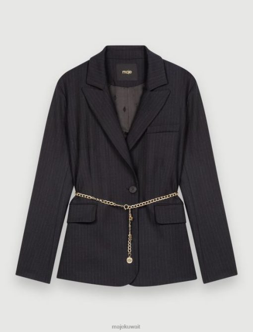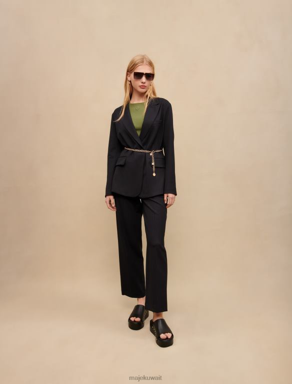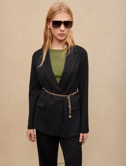 Maje سترة بدلة مخططة بالطباشير ملابس أسود نحيف JP08B128