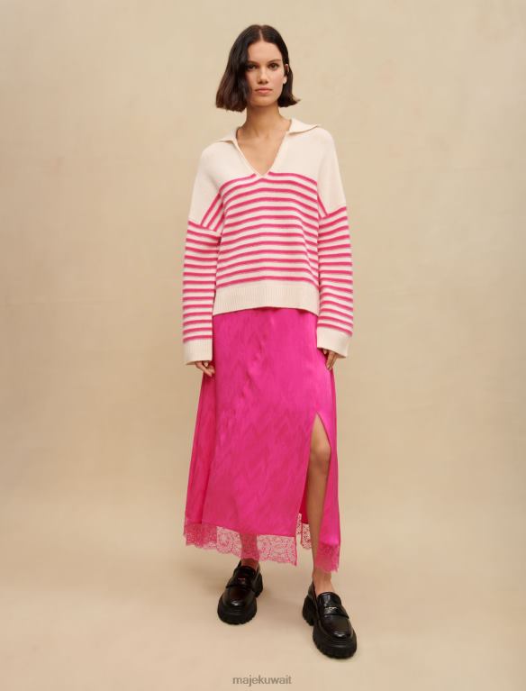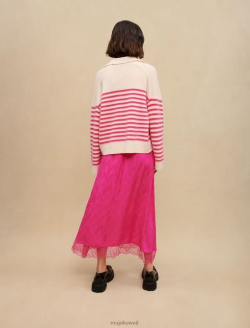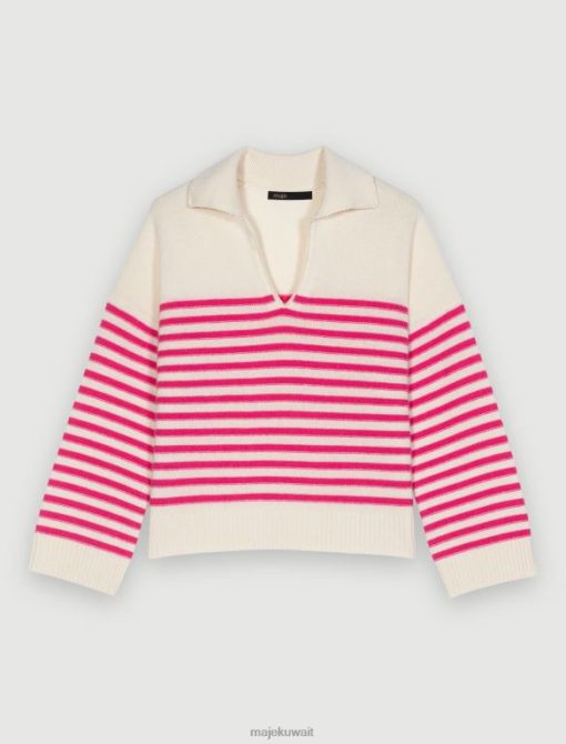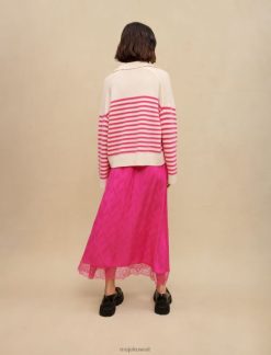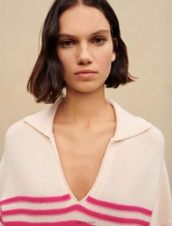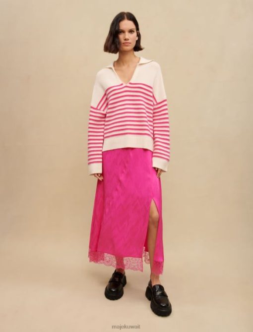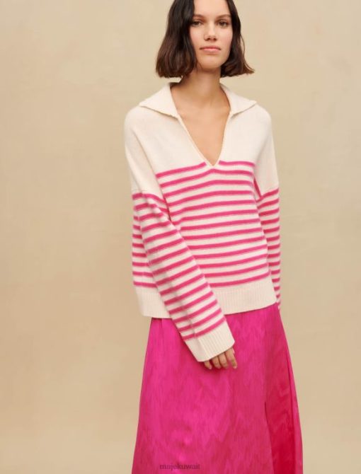 maje يعيد النظر في القميص البريتوني مع اللون الرئيسي لهذا الموسم، وهو اللون الوردي. تتميز هذه السترة ذات الأكمام الطويلة بياقة على شكل حرف V وياقة مفتوحة بنمط مخطط وستتناسب مع الدنيم المفضل لديك.
