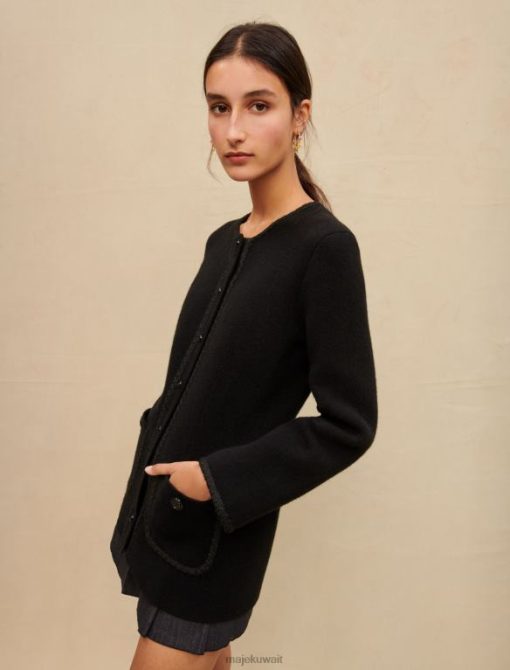 هذه السترة مصنوعة من نسيج الصوف الذي يوفر الدفء والنعومة. إنه ذو قصة مستقيمة ويتم تثبيته بأزرار متناغمة. مثالي ليوم في المكتب