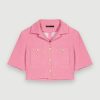 Maje سترة الدنيم مع أحجار الراين ملابس أزرق فاتح نحيف JP08B328