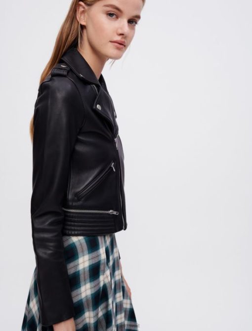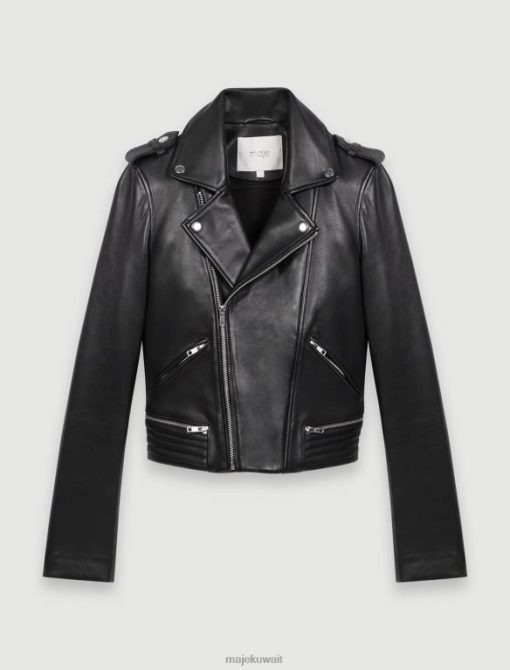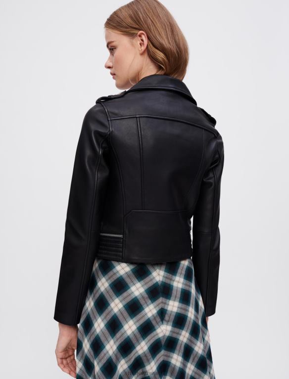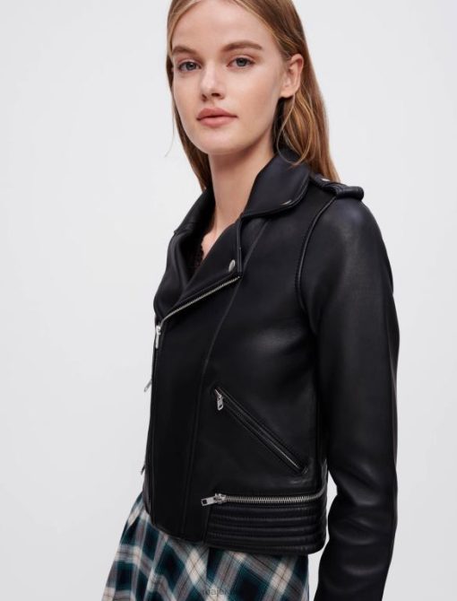 Maje سترة جلدية لراكبي الدراجات النارية ملابس أسود نحيف JP08B143