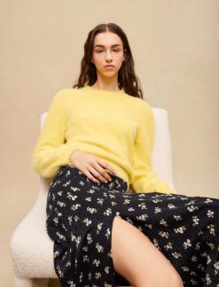 Maje سترة رقيق جولة الرقبة ملابس أصفر نحيف JP08B354