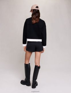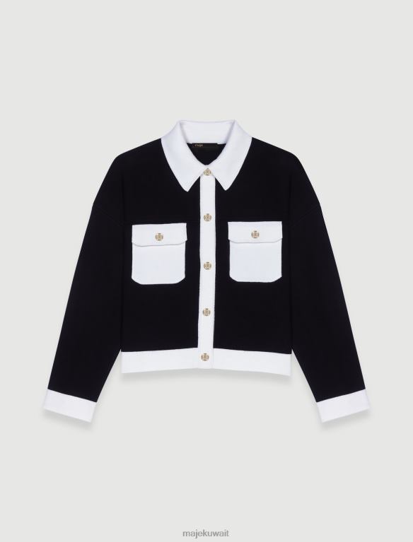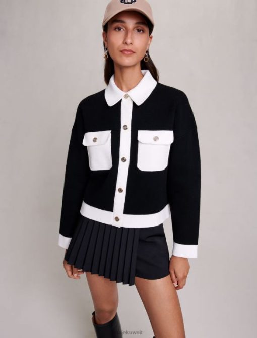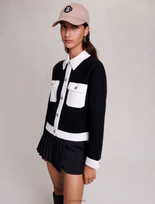 Maje سترة صوفية متماسكة ملابس أسود/إكرو نحيف JP08B429