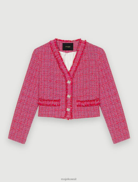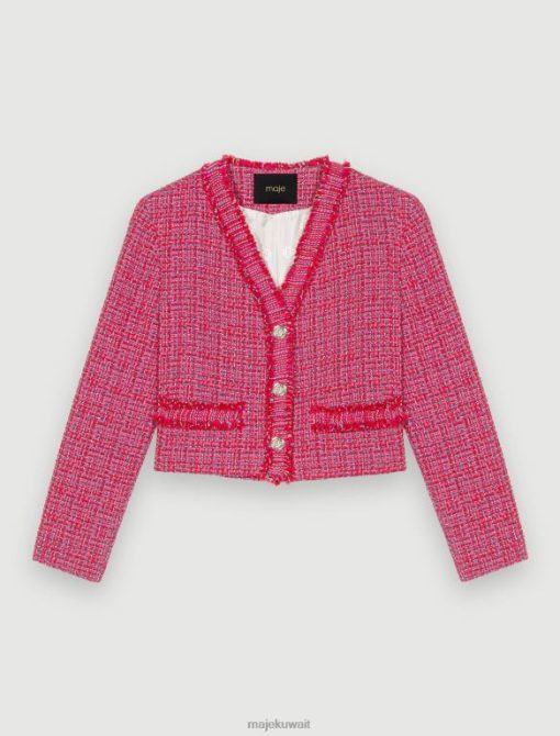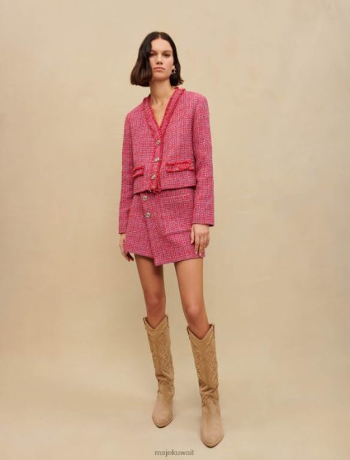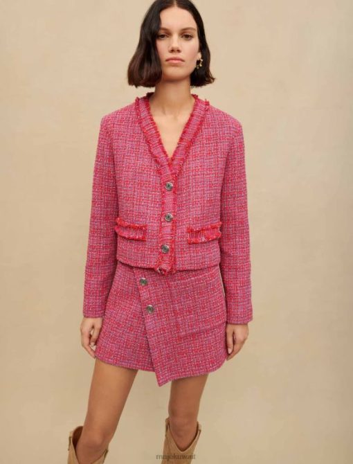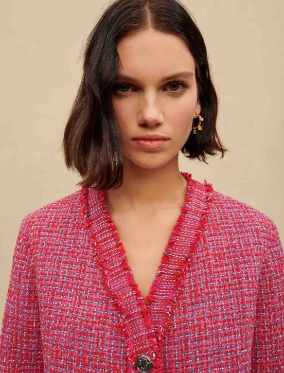 إحدى القطع المميزة في خزانة ملابس Maje متوفرة باللون الوردي المتلألئ. يضفي لون هذا الموسم النضارة والحداثة على هذه السترة التويد المصنوعة من القماش الإيطالي. تحتوي السترة على جيبين ومزينة بأزرار متقنة وحواف خام. ارتديه مع التنورة المطابقة لإطلالة التويد الكاملة.