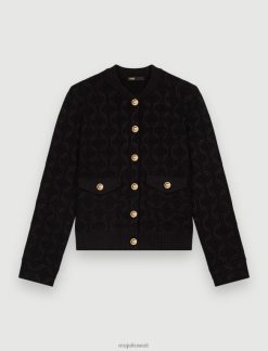 Maje سترة متماسكة على طراز التويد ملابس لون القرنفل نحيف JP08B133