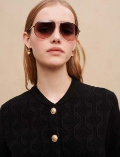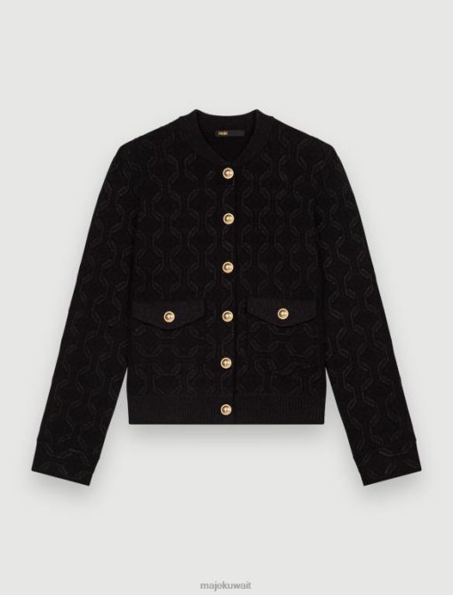 Maje سترة متماسكة بزخارف لامعة ملابس أسود نحيف JP08B132