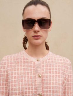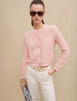 Maje سترة متماسكة على طراز التويد ملابس لون القرنفل نحيف JP08B133