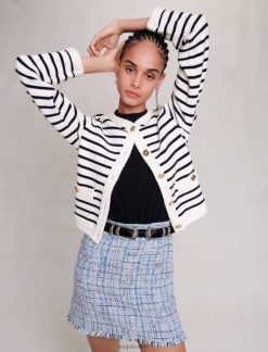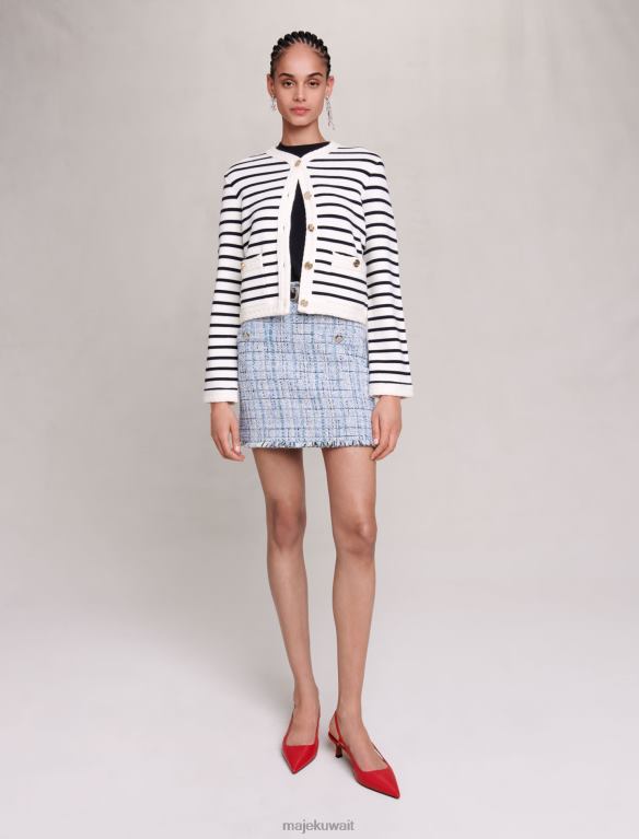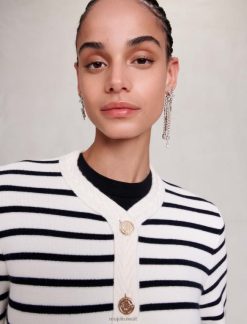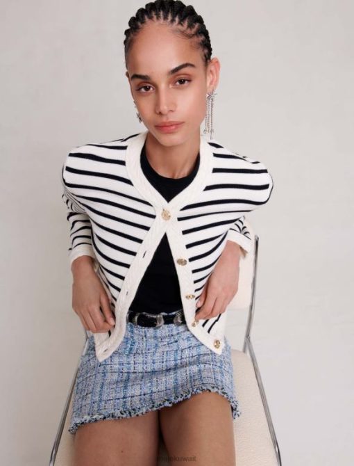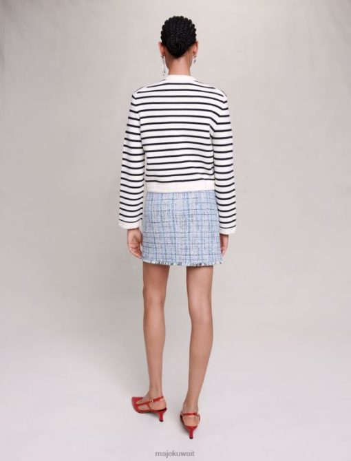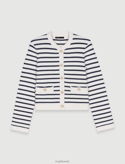 Maje سترة متماسكة مخططة ملابس كحلي/إكرو نحيف JP08B81