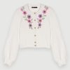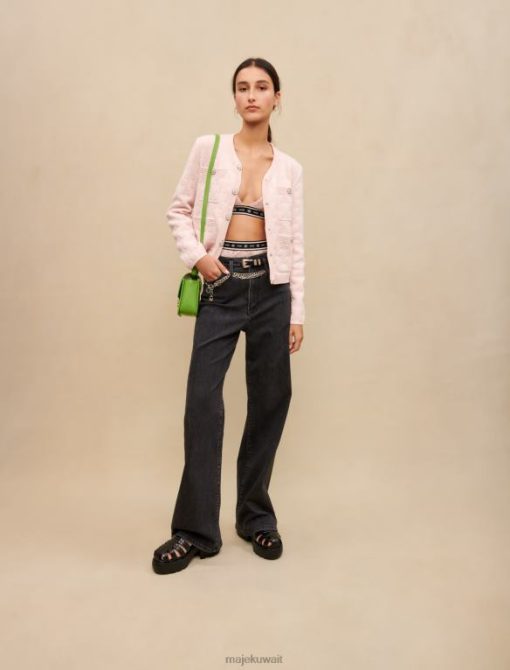 Maje سترة منسوجة بتأثير التويد ملابس لون القرنفل نحيف JP08B321