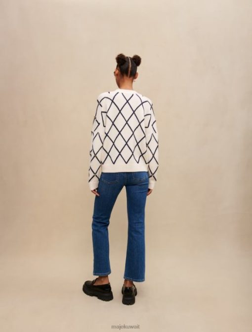 Maje سترة محبوكة بنمط الماس ملابس بيج فاتح نحيف JP08B105
