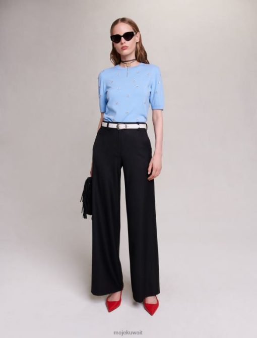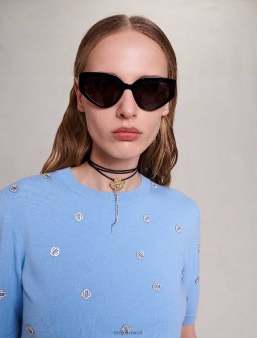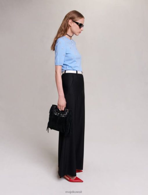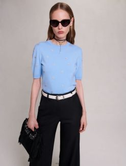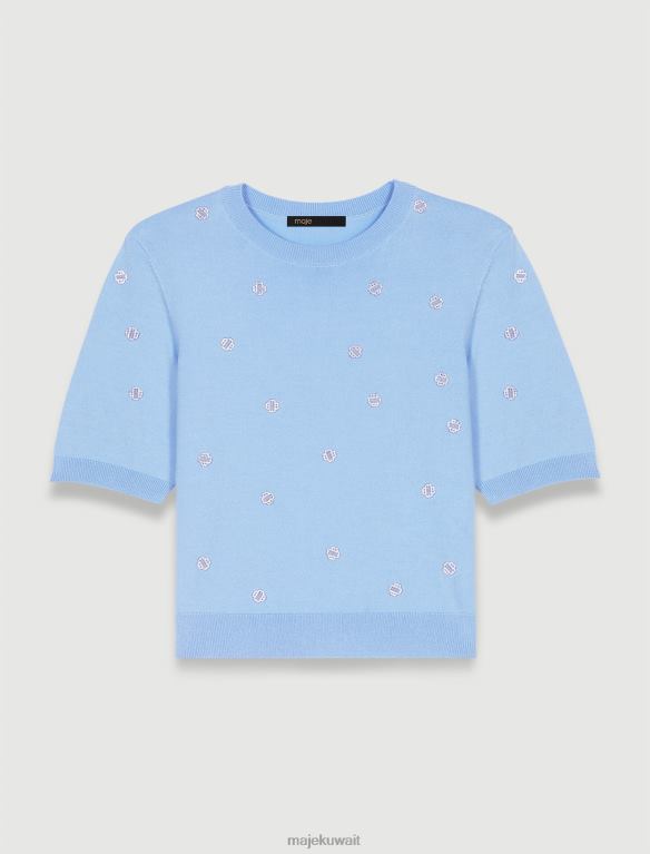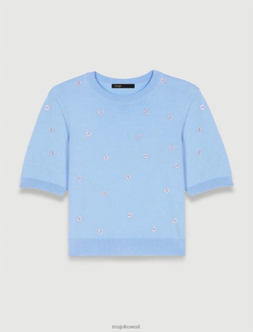 Maje سترة مزينة بأحجار الراين ملابس أزرق نحيف JP08B83