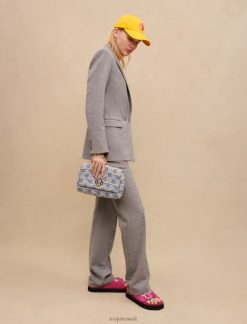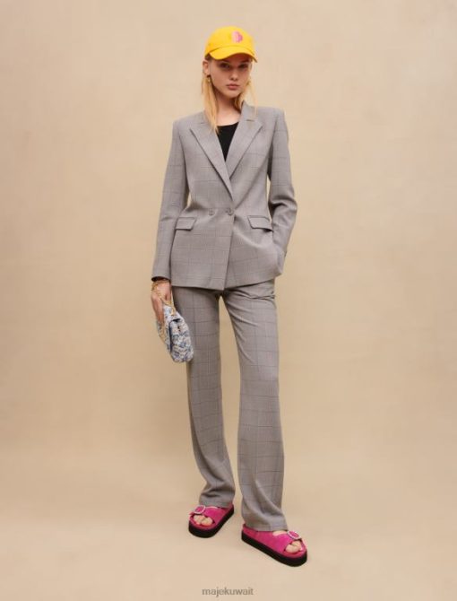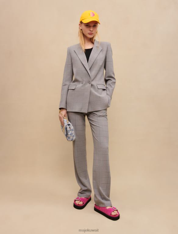 Maje سترة مصممة بمربعات ملابس رمادي نحيف JP08B364