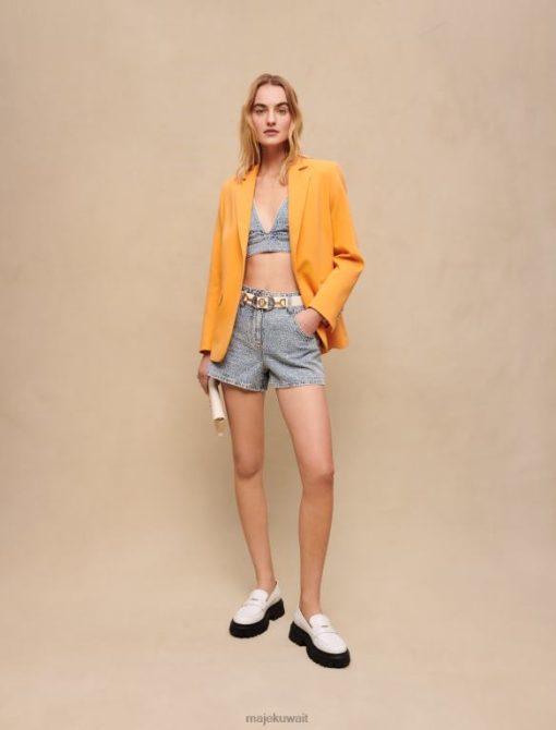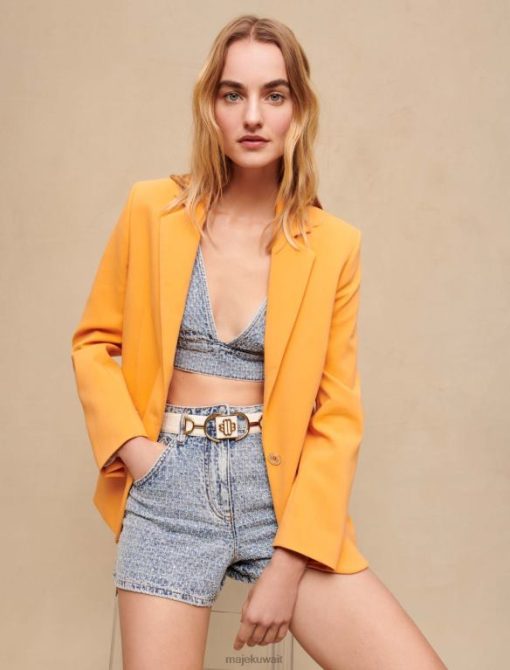تتميز هذه السترة الأنيقة والمنظمة بلون نابض بالحياة لإضفاء الحياة على مظهرك الصيفي. لقد حل الصيف بشكل جيد وحقيقي مع هذه المجموعة الرائعة التي تحتضن الظلال المشمسة. بأكمام طويلة وأزرار تحمل العلامة التجارية maje وجيوب ذات قلاب، ستضيف هذه السترة تباينًا بسيطًا إلى فستان فضفاض خفيف الوزن أو القليل من الأناقة إلى الجينز الكاجوال.