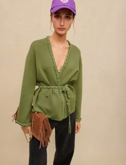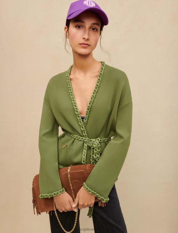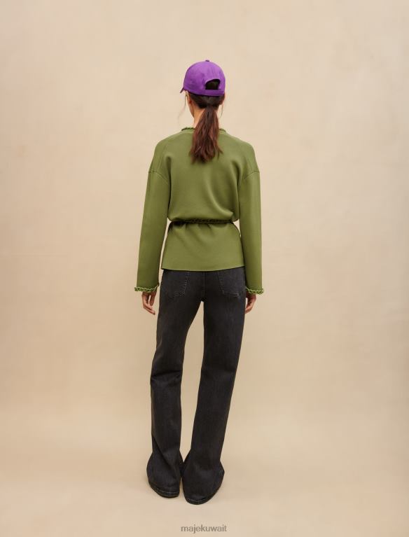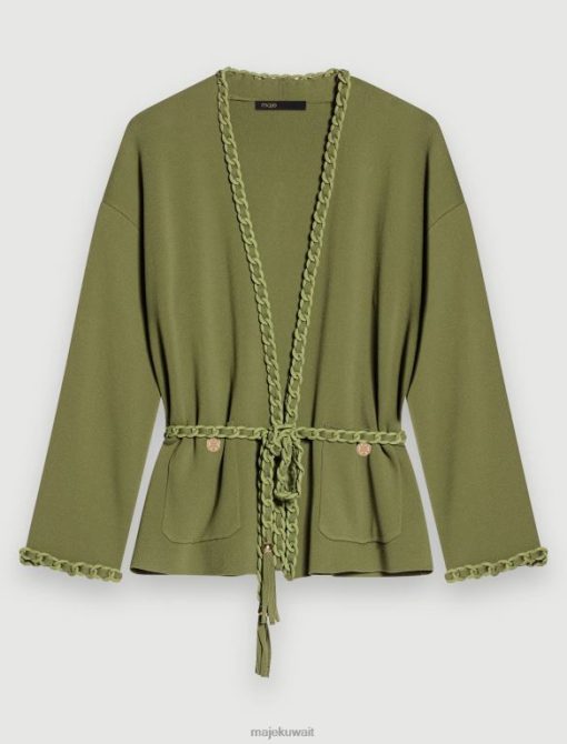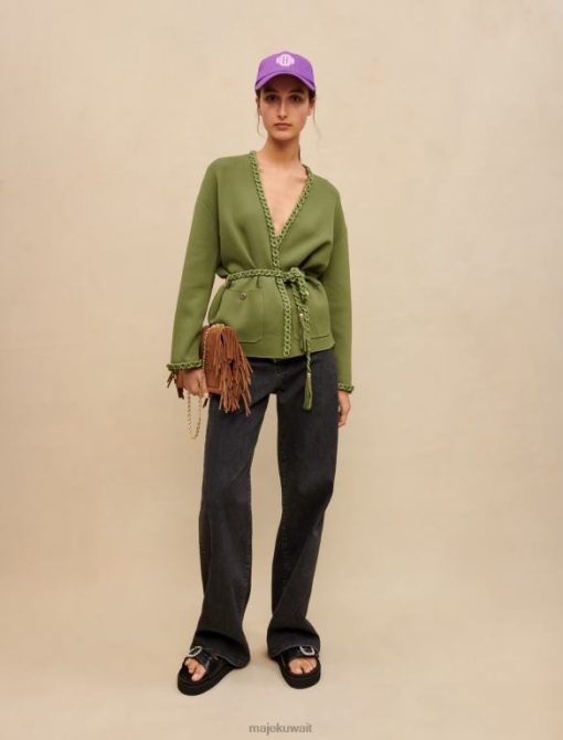 Maje سترة متماسكة مع حرف واحد فقط ملابس حرف واحد فقط من البرسيم إكرو/أزرق نحيف JP08B75