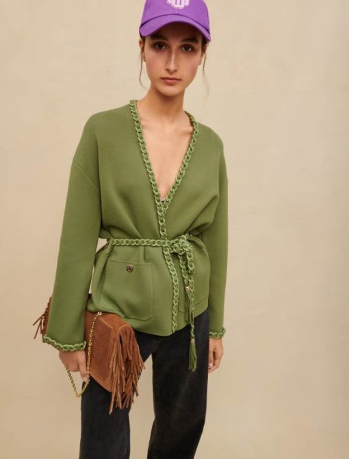 Maje سترة متماسكة على طراز التويد ملابس لون القرنفل نحيف JP08B133