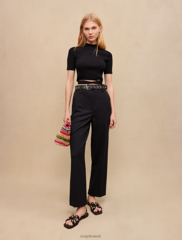 Maje سراويل بدلة مخططة بالطباشير ملابس أسود نحيف JP08B134