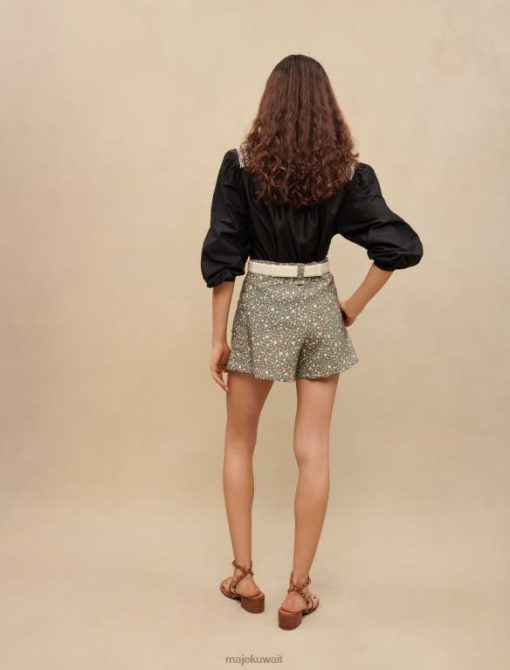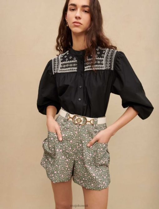 Maje شورت مخطط بالطباشير مع تفاصيل معدنية ملابس أسود نحيف JP08B130