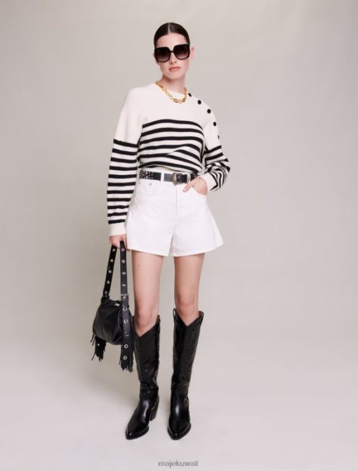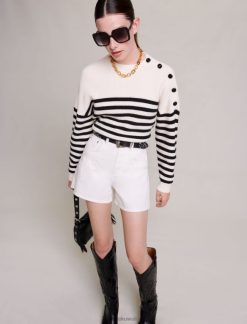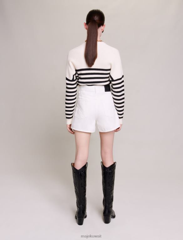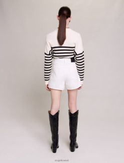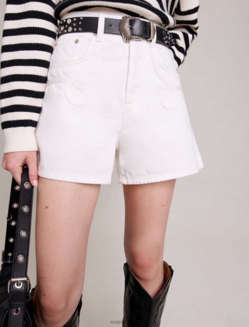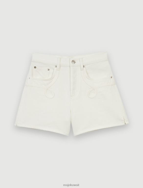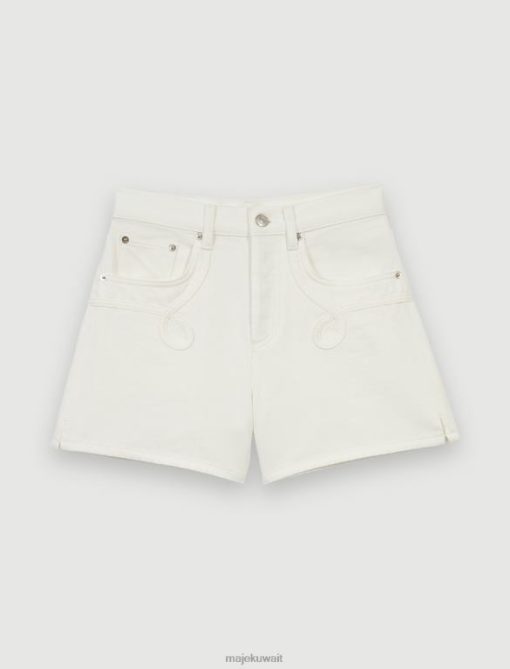 Maje شورت جينز مطرز ملابس أبيض نحيف JP08B241