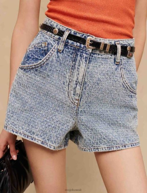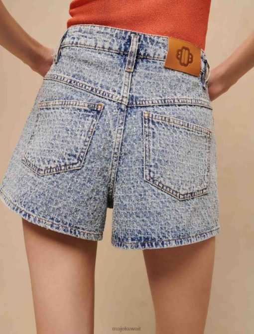 Maje شورت على شكل حرف A من التويد ملابس بيج فاتح نحيف JP08B73