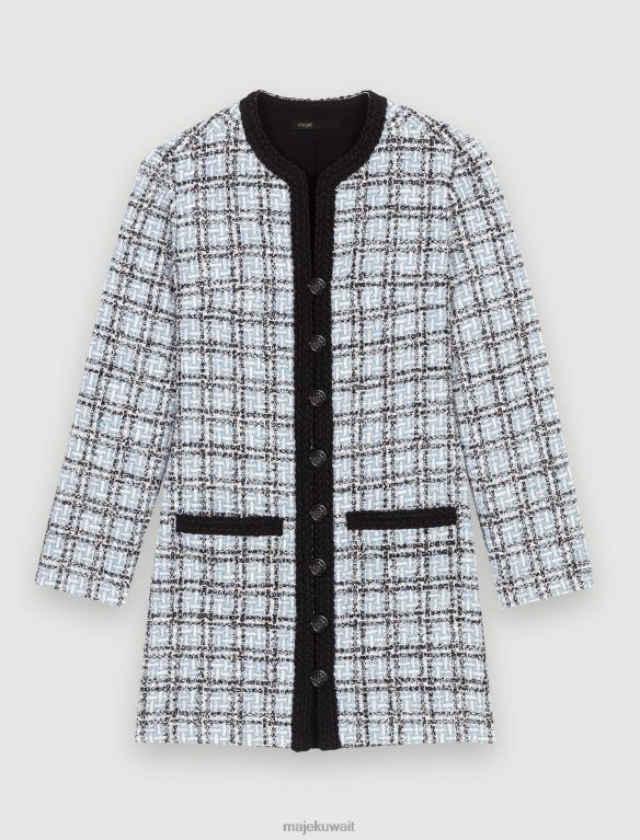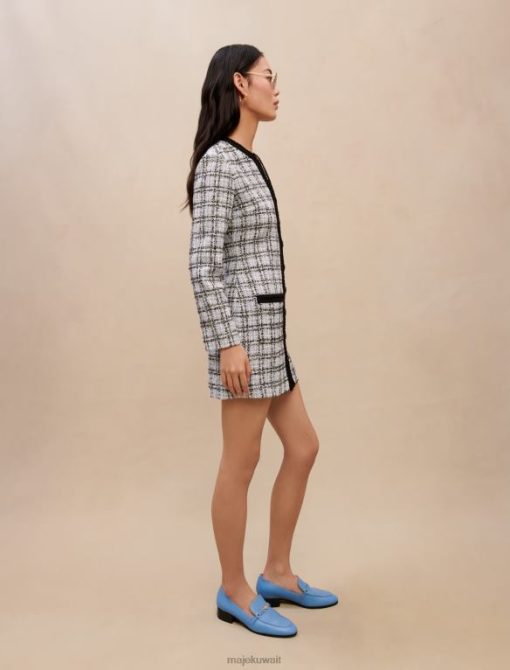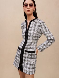 هذا الفستان هو الطراز الخالد الذي تحتاجه كل امرأة في خزانة ملابسها. يتميز بمظهر التويد ويتميز بجيبين على الصدر والتنورة. يضيف الزخرفة السوداء المتباينة لمسة أنيقة وأنيقة.