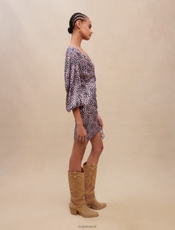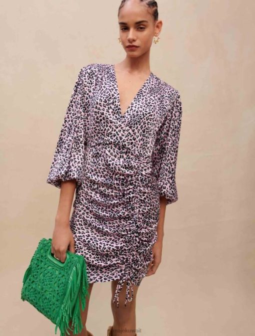 يتميز هذا الفستان بطبعات جلد الفهد بثنيات أنيقة للغاية على الجانب الأيسر. إنه نمط ملفوف بأكمام 3/4 طول أكثر إحكامًا عند الأصفاد. يضيف خط العنق على شكل حرف V لمسة أنثوية.