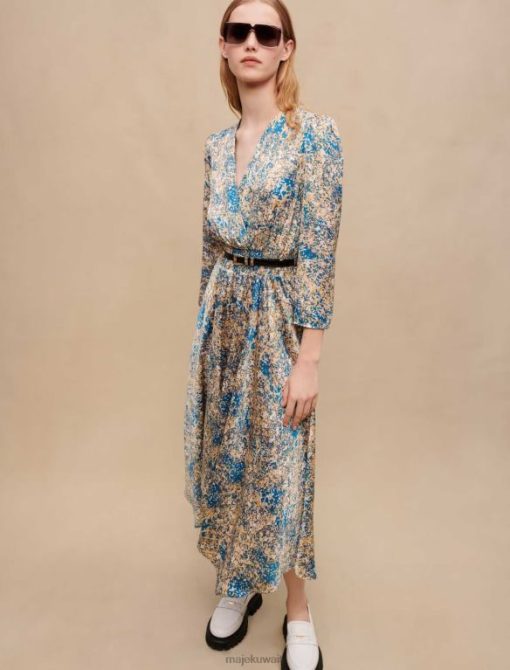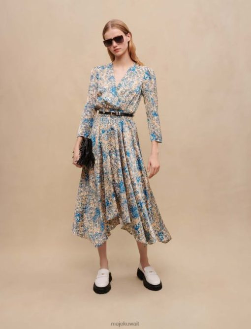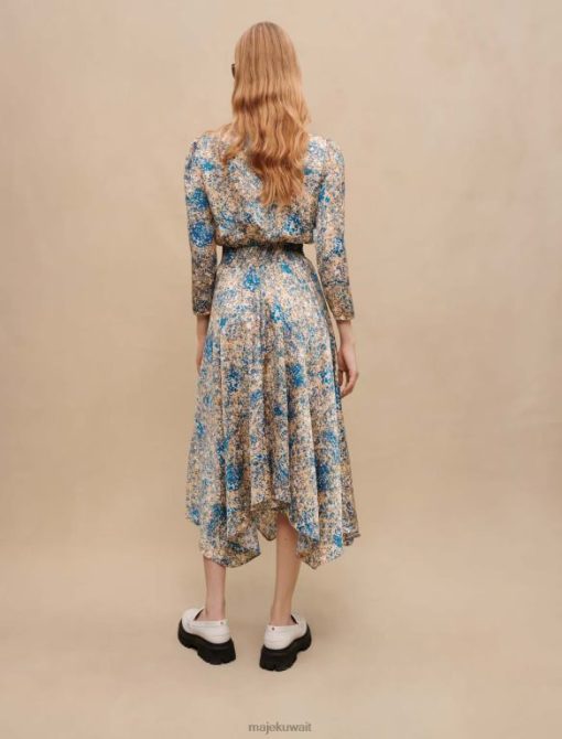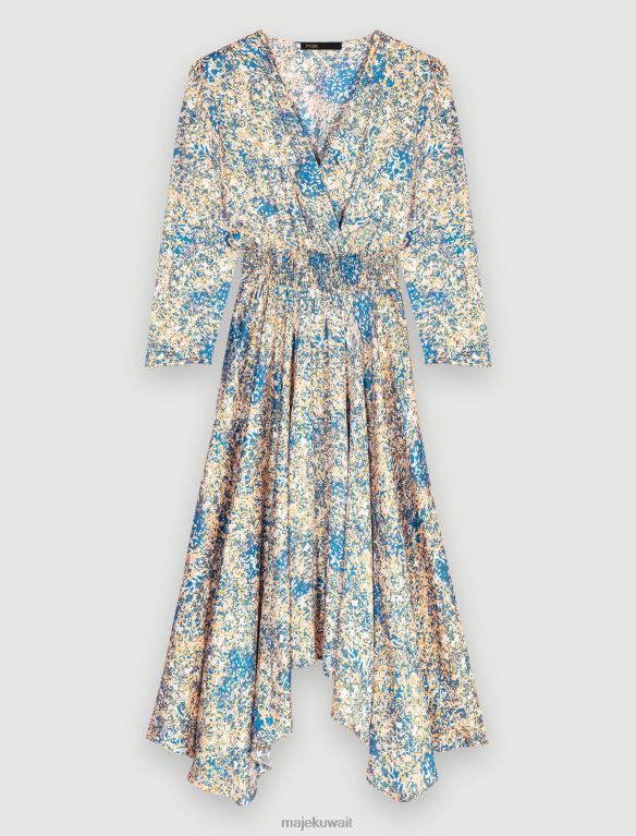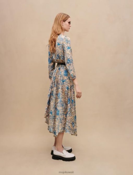 هذا الفستان الساتان غير المتماثل هو قطعة خفيفة الوزن وأنيقة. يتميز بياقة ملفوفة، وأكمام طويلة، وسترة على الخصر، وطباعة تجريدية بألوان ناعمة.