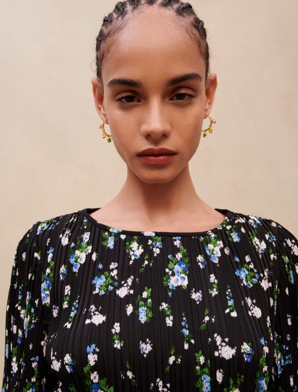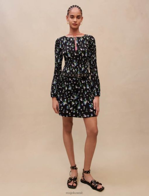يعيد هذا الفستان النظر إلى قطعة أساسية في خزانة ملابس النساء: الفستان ذو الرقبة المستديرة الذي لا غنى عنه. يتميز هذا الفستان بطبعات الأزهار، وهو أنيق وخالد. ويتم شدها بواسطة شريط مطاطي عند الأساور.