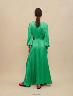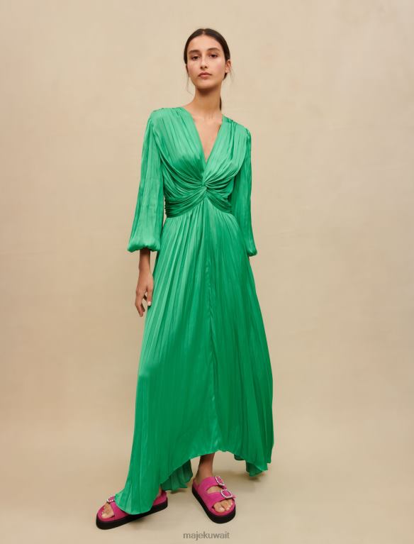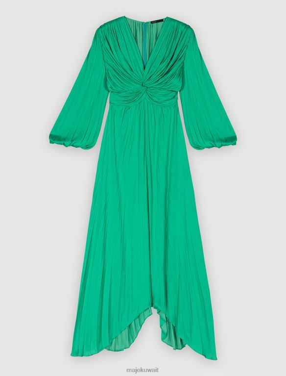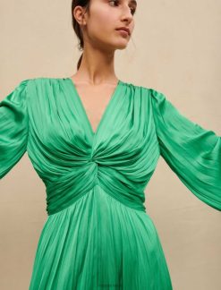 Maje فستان ساتان طويل بثنيات ملابس أخضر نحيف JP08B448