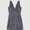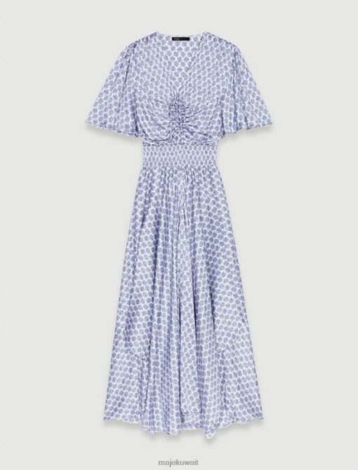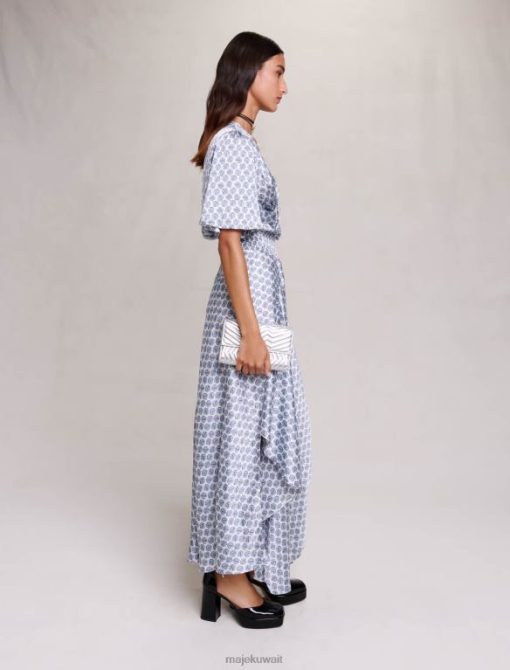 يحتوي هذا الفستان الطويل على أكمام فراشة مجمعة قصيرة ورقبة على شكل حرف V مع أربطة بحيث يمكن تعديله ليكون مطويًا أكثر أو أقل. تم تصميمه عند الخصر، ويتميز بتنورة طويلة غير متماثلة، مما يخلق مظهرًا رقيقًا. تجرأ على إضافة إكسسوارات الروك لإكمال المظهر: حذاء ذو نعل سميك وقلادة حول رقبتك.