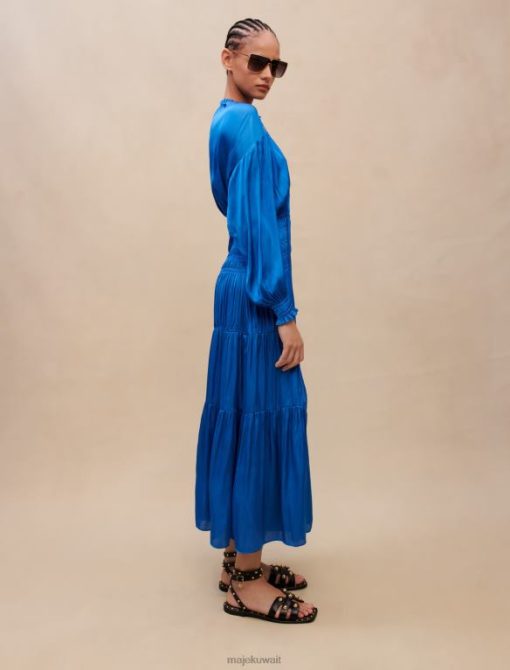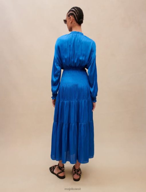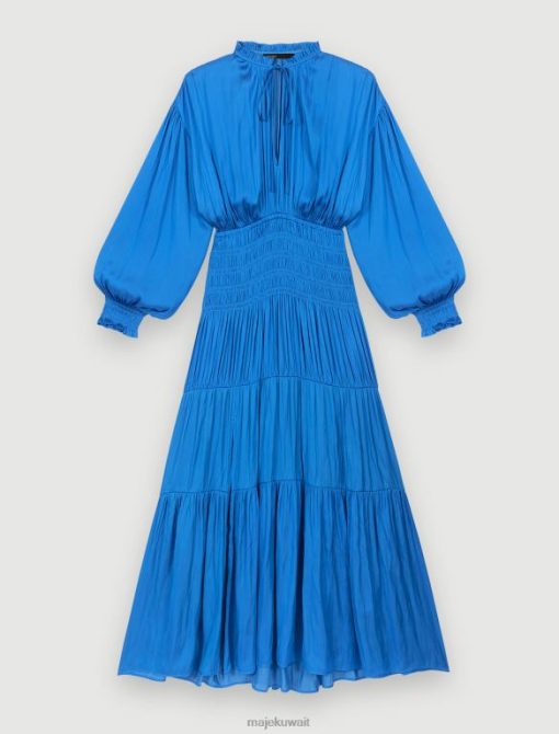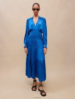 ينضح هذا الفستان الطويل بالأنوثة، كما أن خامته الساتان تجعله مريحًا للغاية عند ارتدائه. تم تصميم هذه القطعة عند الخصر مع تكتلات رقيقة على الأكتاف، وتم رفعها بواسطة الكشكشة الموجودة على التنورة. –