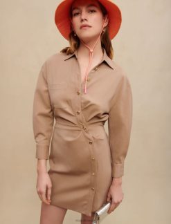 يتميز هذا الفستان المميز بثنياته الرقيقة وأزرار تثبيت غير متماثلة، وخصر مجسم، ورقبة على شكل حرف V، وأكمام طويلة. ارتديه مع حذاء الكاحل لإطلالة كاجوال أنيقة.