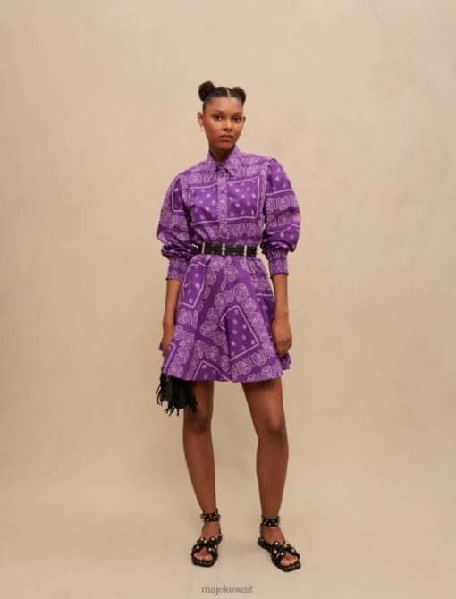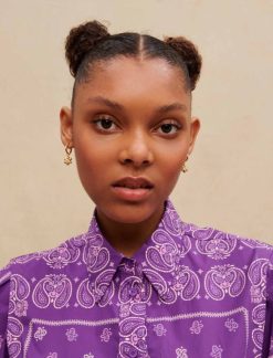 مع اقتراب فصل الصيف، تكشف Maje النقاب عن كبسولة “أرجوانية استوائية” فريدة من نوعها، مع طبعة البيزلي الأساسية في مكان الصدارة. تم تصميم هذه المجموعة الغريبة والملونة لتكون بمثابة قصيدة للسفر، ودعوة لمزج القطع المميزة التي ستضفي مزيدًا من البهجة على أجمل المواسم. يتميز هذا الفستان القطني القصير الخالد بلون نابض بالحياة بطباعة باندانا بالكامل. بأكمام ثلاثة أرباع وياقة قميص مفتوحة وتنورة واسعة، تضفي خفة على الصورة الظلية وتعززها. ولإبراز الخصر أكثر قليلاً، اختاري حزامًا جلديًا مرصعًا وإبراز تأثير الكورولا للتنورة. ثم أضيفي صندلًا مفتوحًا وحقيبة مميزة. زيني مظهرك الصيفي بالمجوهرات المصنوعة يدويًا من التعاون الحصري بين Maje وEliou.