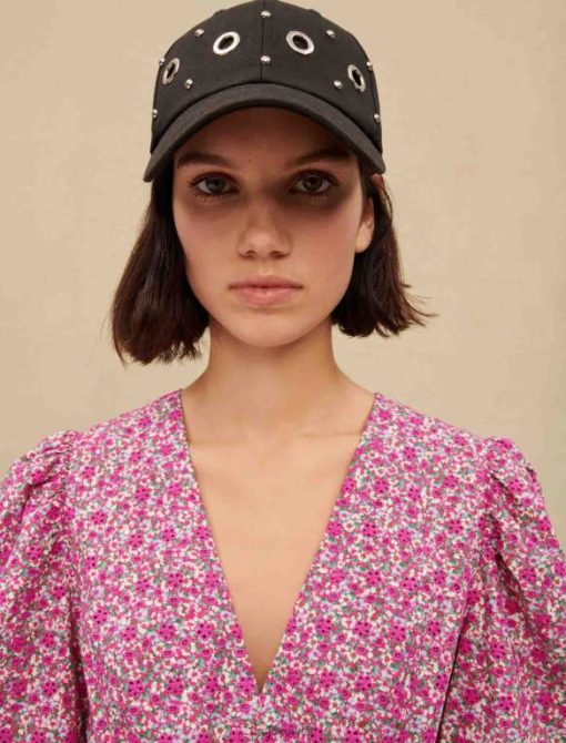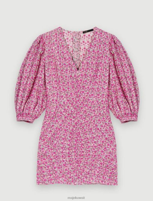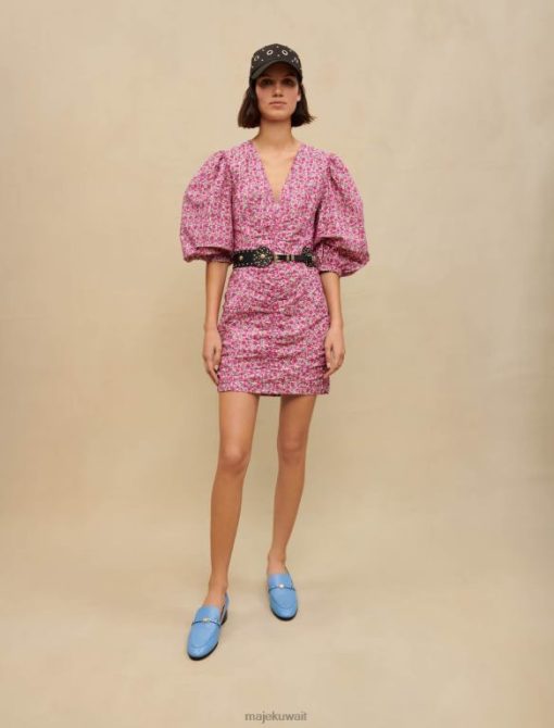 صمم استوديو maje طباعة زهور جديدة ومتألقة للموسم الجديد. يتميز هذا الفستان القصير بخطوطه الأنثوية بياقة على شكل حرف V وأكمام ضخمة مجمعة بدقة بطول ثلاثة أرباع.