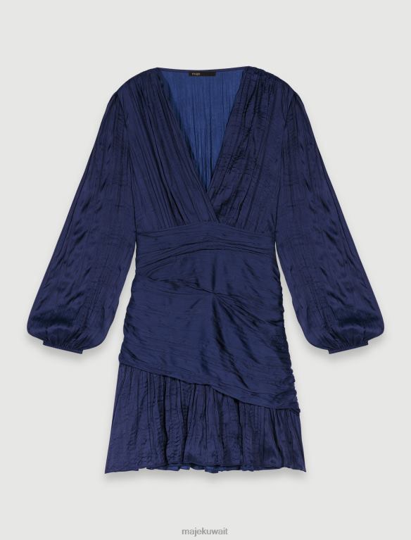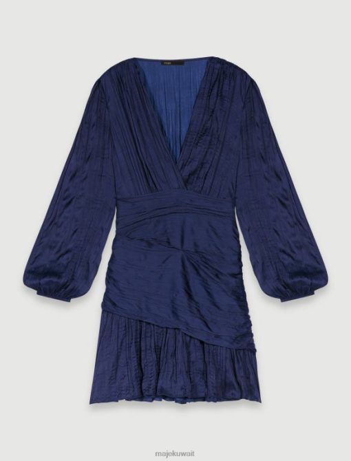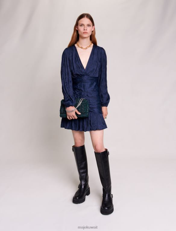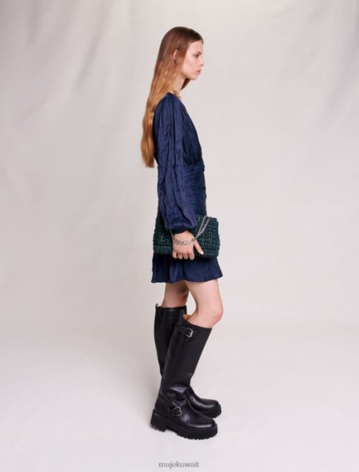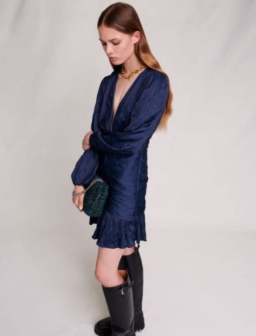 موسمًا بعد موسم، تعيد ماجي اختراع الفستان الرسمي القصير بشكله المميز. الفستان أنيق للغاية وله قصة ضيقة، وياقة على شكل حرف V، وأكمام طويلة فضفاضة مع أطراف مطاطية. مثالية لأي مناسبة، حيث تخلق التنورة الخفيفة ذات الثنيات صورة ظلية مناسبة ومظهرًا حرًا وواثقًا.