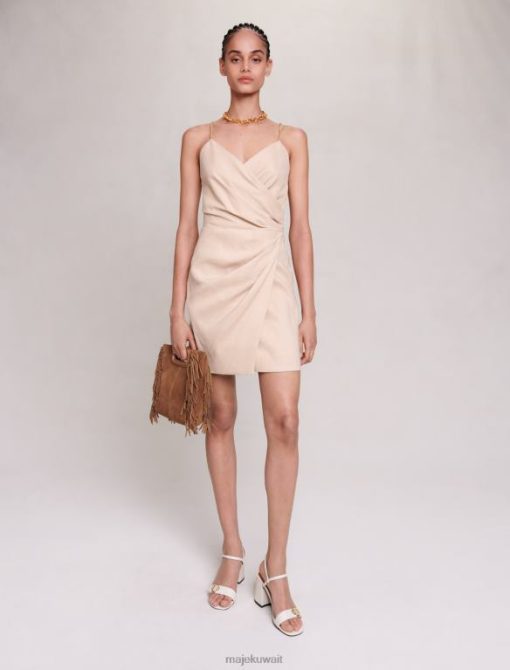 تجمع مجموعة maje الجديدة بين الرومانسية الرقيقة والأناقة البريطانية مع لمسات من ألوان الباستيل وطبعات الأزهار والألوان الطبيعية للحصول على مظهر جديد ومبتكر. تمتعي بالأناقة مع هذا الفستان القصير، المثالي لأي مناسبة ويمكن ارتداؤه ليلاً أو نهارًا. إلى جانب سحاب للإغلاق، يتميز بتفاصيل جريئة: خط عنق متقاطع، وأشرطة قابلة للتعديل والفصل مع تصميم سلسلة ذهبية اللون، وتنورة ذات طيات وثنيات.