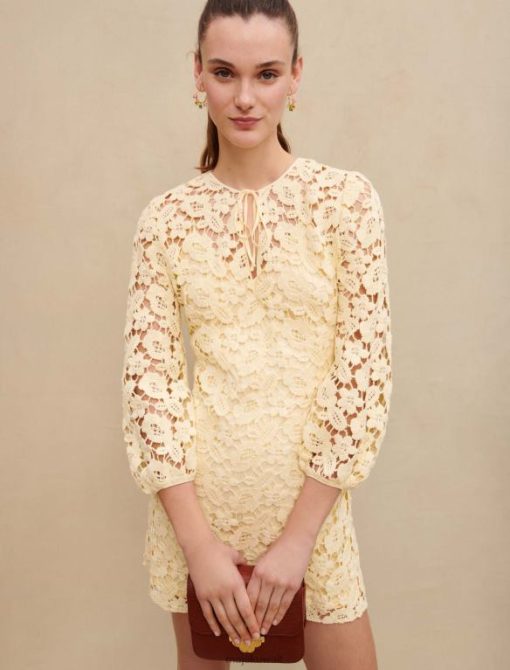 خفيف ورومانسي، هذا الفستان القصير المحبوك بالكروشيه سيضفي على صورك الصيفية إحساسًا خفيفًا ومنسمًا. مع بطانة قابلة للإزالة، يتميز برقبة دائرية مع أربطة وأكمام بطول ثلاثة أرباع مع أساور مطاطية.