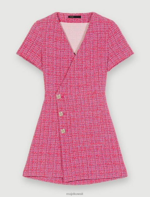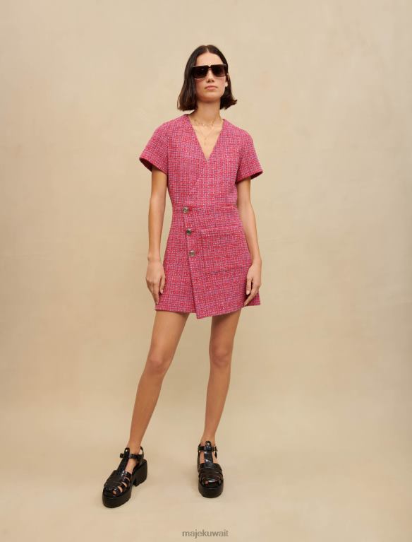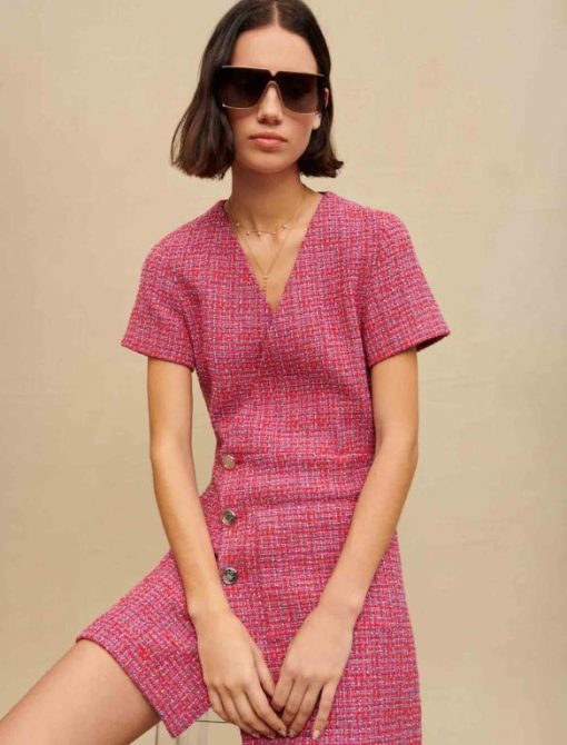 مصنوع من التويد الإيطالي الرائع، هذا الفستان القصير ذو التصميم الملتف له غطاء غير متماثل بأزرار في الأمام. هذا تصميم عصري لفستان ملابس العمل من قماش غير متوقع. أنثوي للغاية، فهو يسلط الضوء على منحنياتك ويحتوي على تفاصيل جريئة: فهو مفتوح من الخلف.