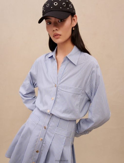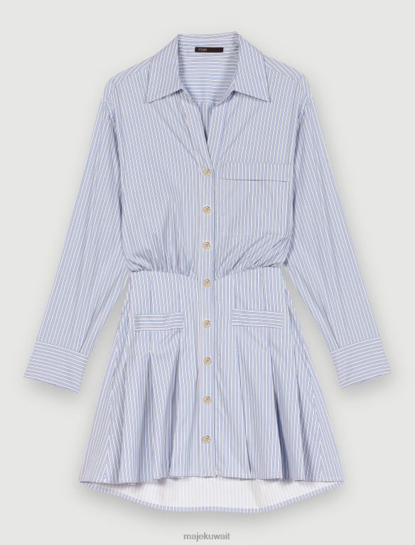 Maje فستان قميص مخطط ملابس أزرق فاتح نحيف JP08B371
