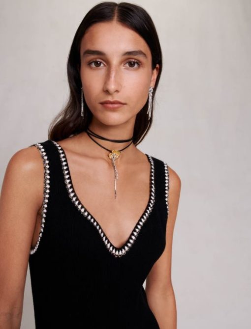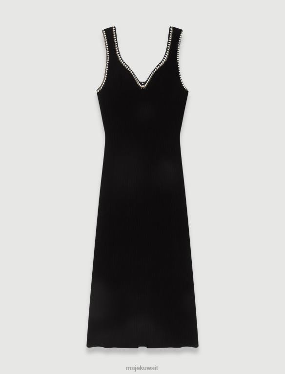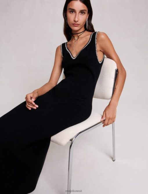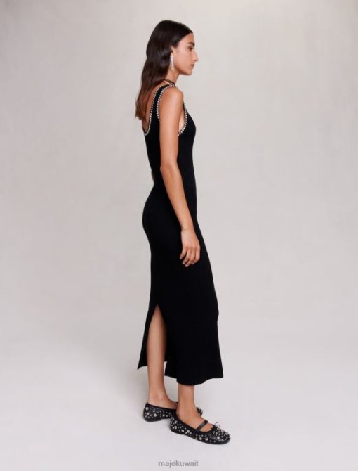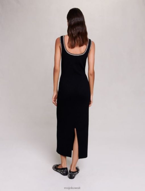 Maje فستان ماكسي متماسكة ملابس أسود نحيف JP08B90