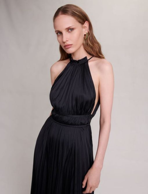 استكشف مجموعتنا الجديدة المستوحاة من العالم الحضري النابض بالحياة. تم إعادة اختراع الملابس الرسمية الخالدة بمظهر صخري جريء. مثالي لأي مناسبة، هذا الفستان الطويل المصنوع من الساتان مثالي للنهار أو الليل. يتميز بياقة مستديرة مع فتحات للأذرع على الطراز الأمريكي، كما أن التنورة ذات الثنيات الواسعة تخلق مظهرًا خفيف الوزن وجيد التهوية. إنه أنيق للغاية، يُظهر الجلد ويرسم الخصر بفضل الأربطة الموجودة في الخلف.