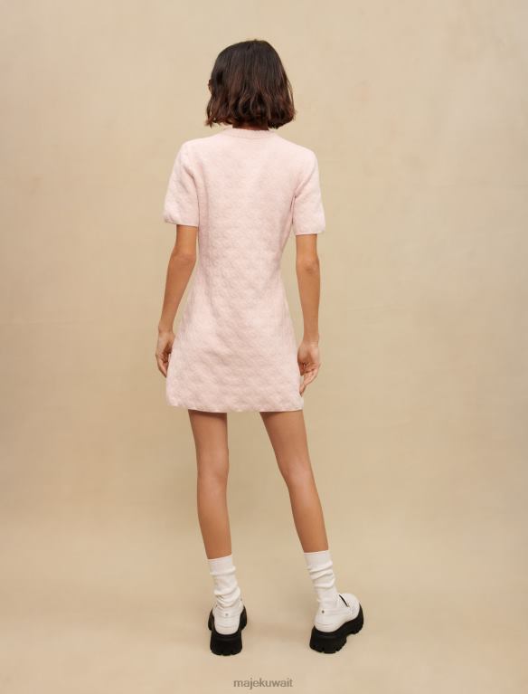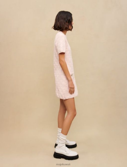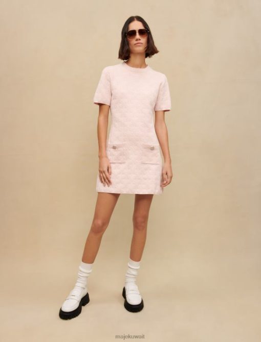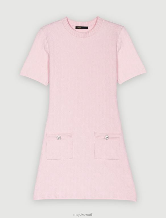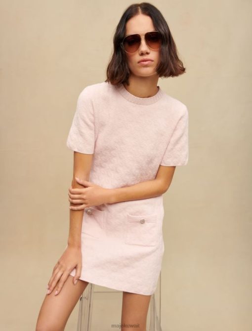 هذا الفستان المنسوج ذو الرقبة المستديرة مليء بالتفاصيل. تم تزيين العقدة بإضافات ذات تأثير مخملي، على شكل شعار البرسيم الصغير. تحتوي على جيبين أماميين مع زرين بشعار maje. مثالي ليوم في المكتب.