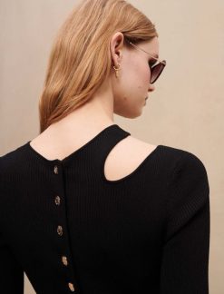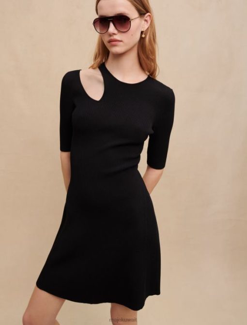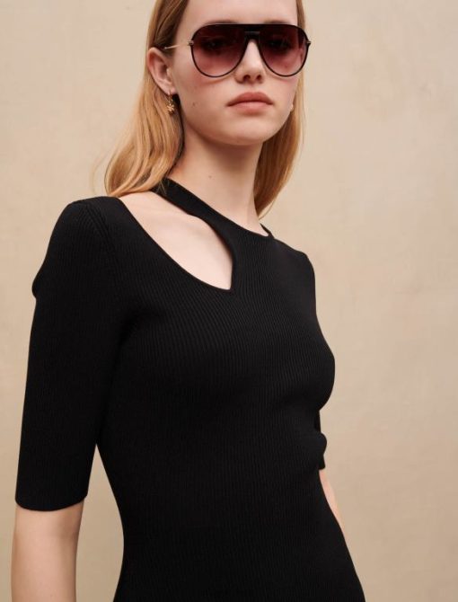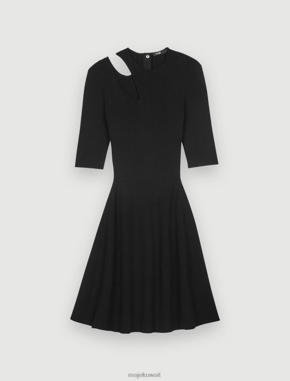 Maje فستان متماسك مع فتحة على الكتف ملابس أسود نحيف JP08B426