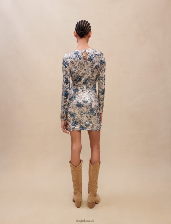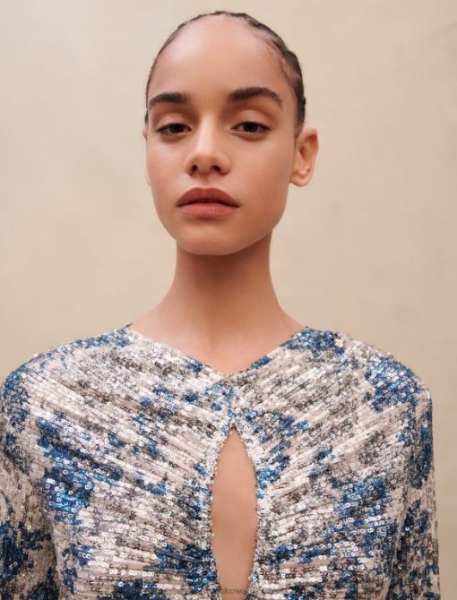 سيضفي هذا الفستان المزين بالترتر لمسة من البهجة على إطلالتك المسائية. قصير ومنثني عند الخصر، ومميز بأكمام طويلة ورقبة دائرية مع فتحة شق تظهر قليلاً من الصدر. لامع وأنثوي، فهو مثالي للمناسبات الخاصة.