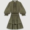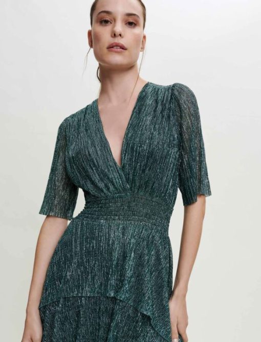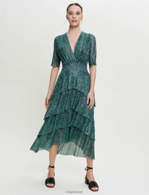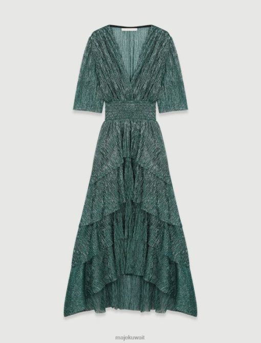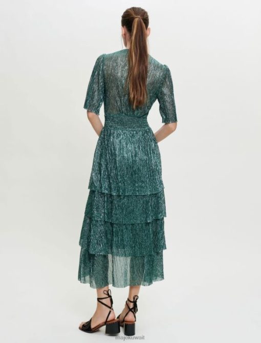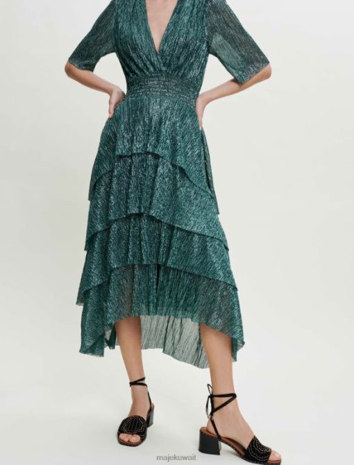Maje فستان من قماش اللوركس المطاطي مع كشكشة ملابس أخضر نحيف JP08B127