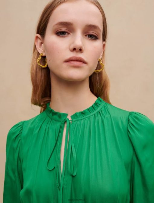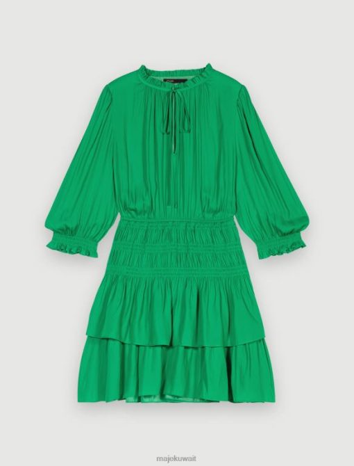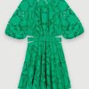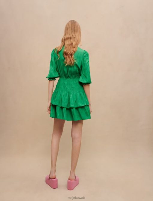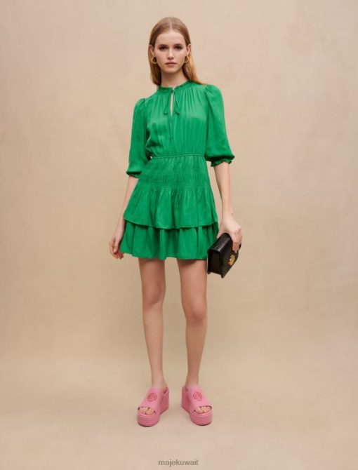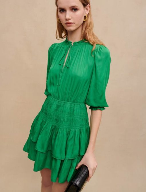 يتميز هذا الفستان القصير خفيف الوزن بكشكشة وستائر وأكمام بطول ثلاثة أرباع وتفاصيل أنثوية لا نهاية لها. بفضل خط رقبته على شكل حرف V وخصره المدخن، فإنه يبرز الشكل ويعدك بمظهر جيد التهوية. ارتديه مع صندل ديامانتي وأكسسوارات مع حقيبة يد متباينة.
