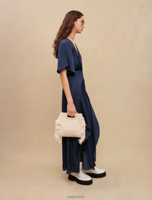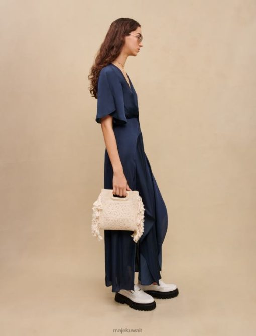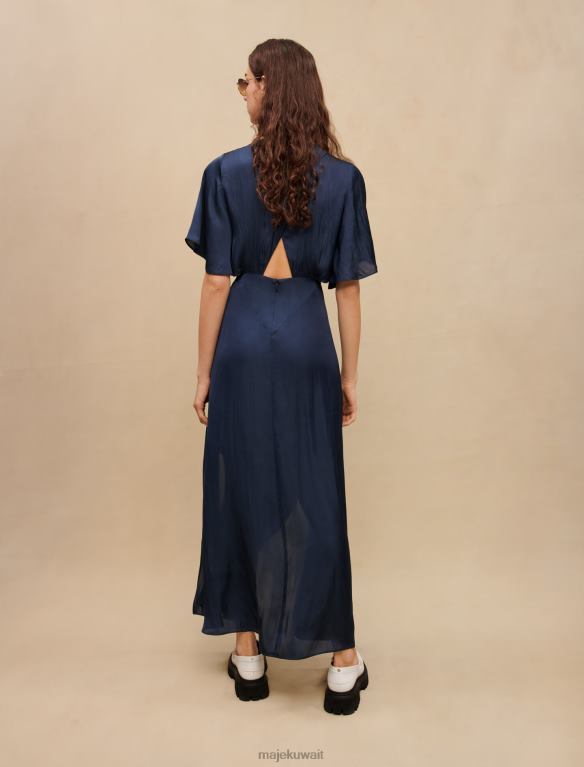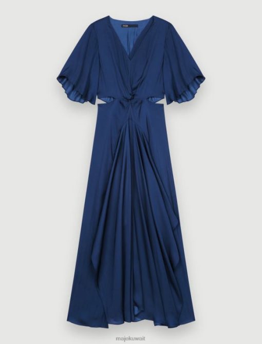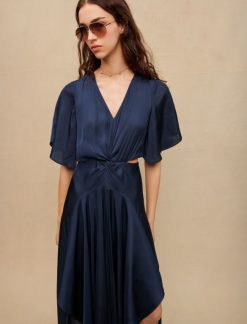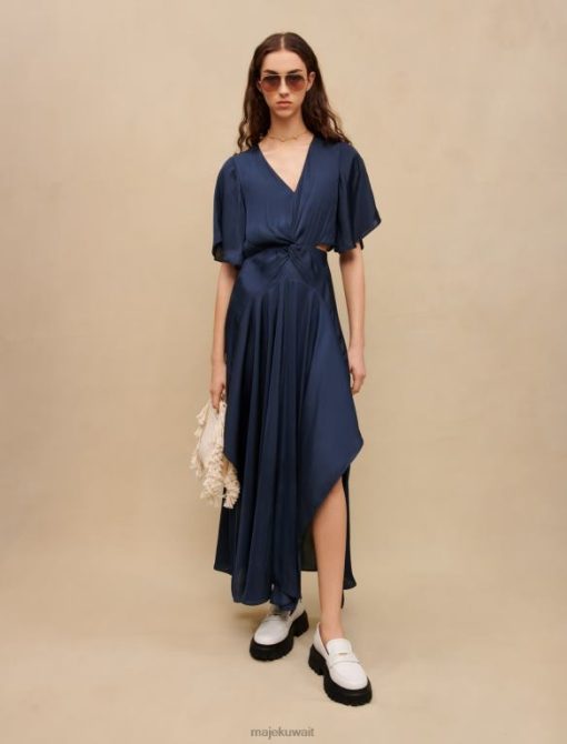 Maje فستان وشاح من الساتان المتدفق ملابس القوات البحرية نحيف JP08B110