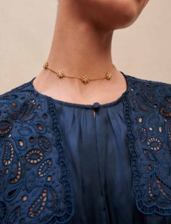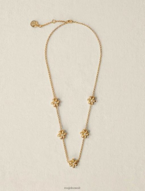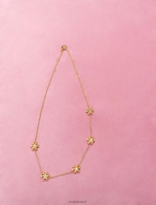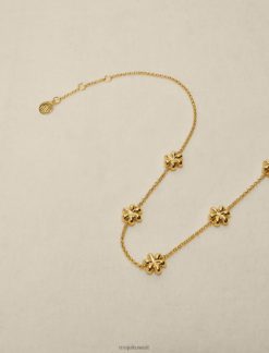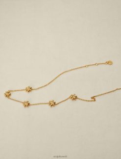ستظهر زهور الموسم حول رقبتك على شكل قلادة ناعمة من النحاس الأصفر باللون الذهبي. يتميز بحلقتين تمديد مما يسمح لك بتعديل الطول.