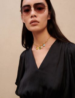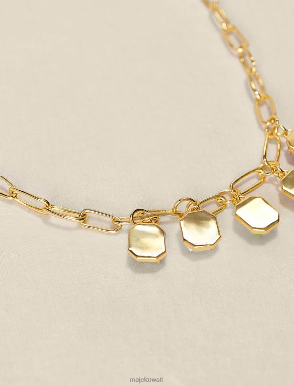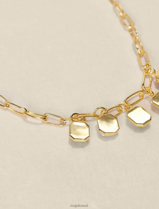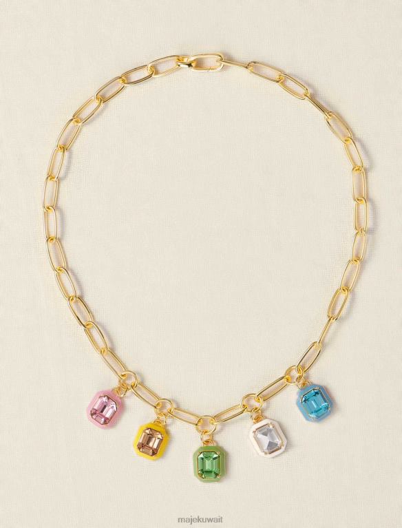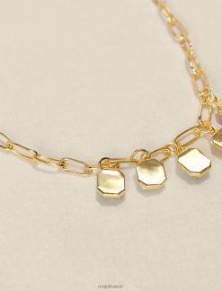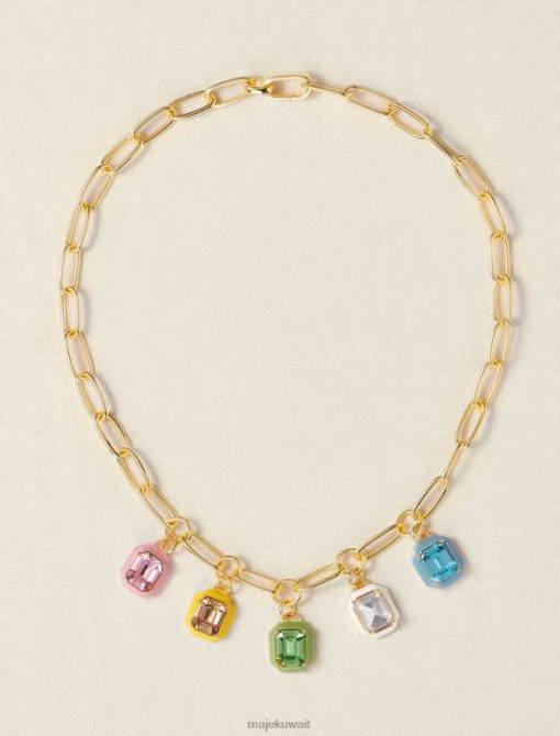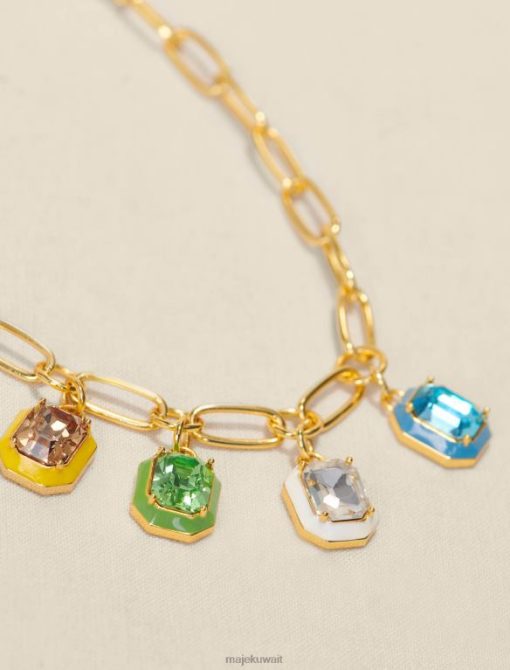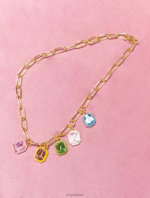 تتكون هذه القلادة من سلسلة بيضاوية كبيرة مصنوعة من النحاس المعاد تدويره المطلي بالذهب، ومعززة بـ 5 دلايات من المينا الملون مع أحجار رقيقة. سوف تشعر أنك ترتدي ملابسك في لحظة.